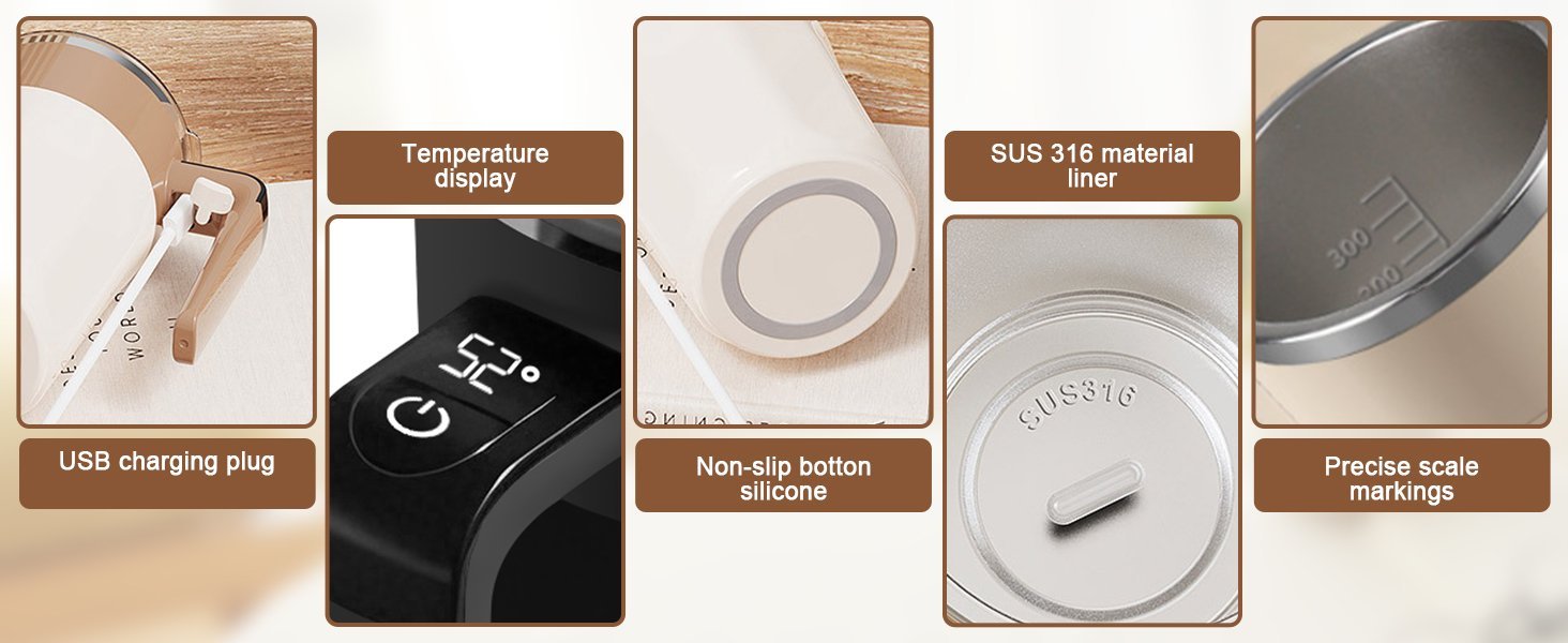 - Premium Safe Materials: Made from food-grade 316 stainless steel and food-grade ABS plastic, ensuring safety, non-toxicity, and corrosion resistance. Double-walled insulation keeps drinks warm without burning your hands. The seamless construction prevents leaks and resists wear. Simply rinse after use—do not dishwasher or soak.